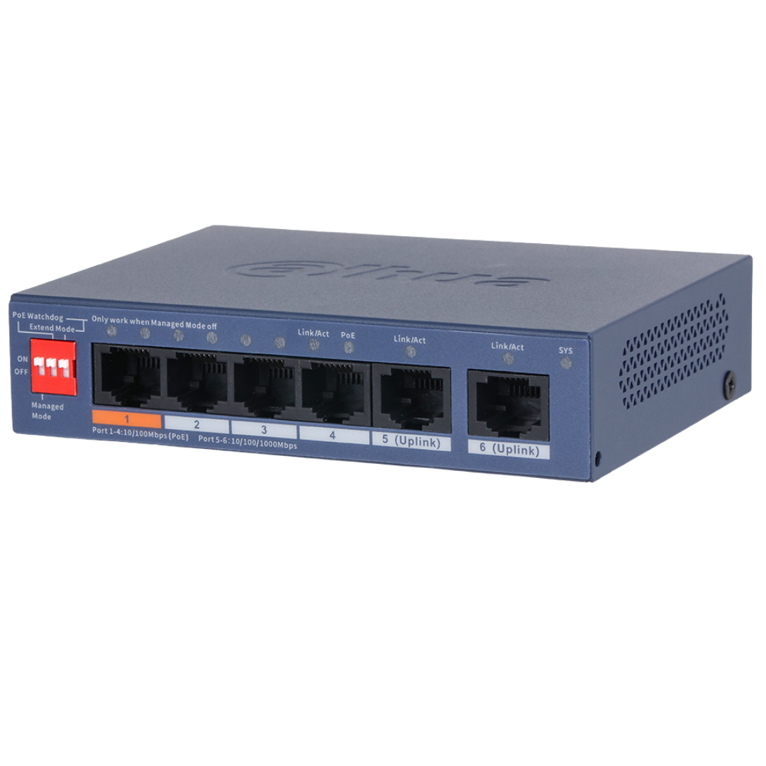 Dahua 6-Port Cloud Managed Desktop Switch with 4-Port...